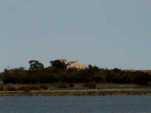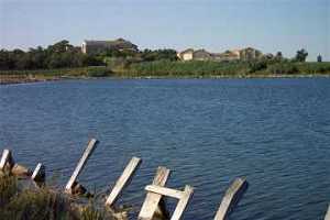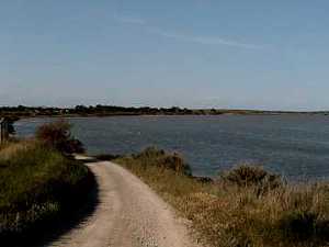 Au delà du canal, la Cathédrale de Maguelone s'aperçoit, derrière